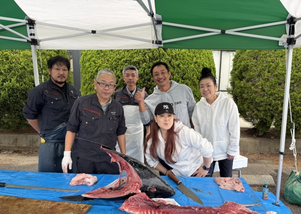 たくさんのイベントやキッチンカーが並ぶなどし、大変賑わっておりました。私たちもマグロの解体ショーを任され、当日は約80kgのマグロを解体させて頂きました。ショーが始る随分前から、沢山の観客の方が場所取りをされ、初めて見るマグロの魚体に、子供たちも興味津々。直に生のマグロに触れ、大はしゃぎの子供たちと、その後振舞われるマグロ丼が待ち遠しい家族の方々。